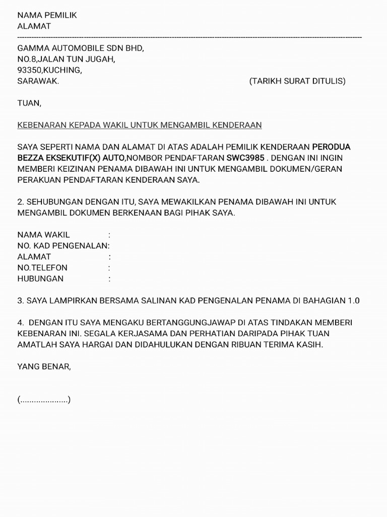 Contoh surat wakil kuasa tnb have a graphic from the. Example of a power of attorney arrangements concerning vehicles. Up to 3 cash back Save Save Surat Wakil TNB For Later.